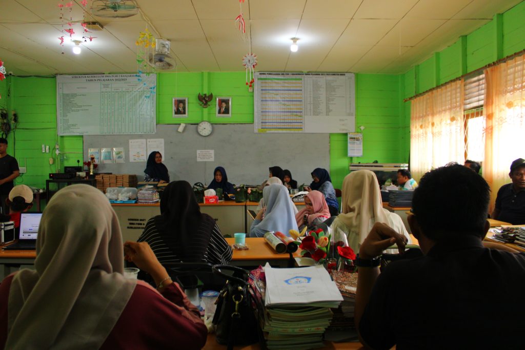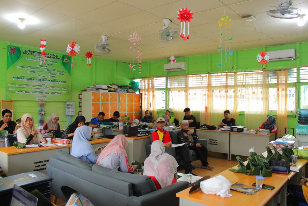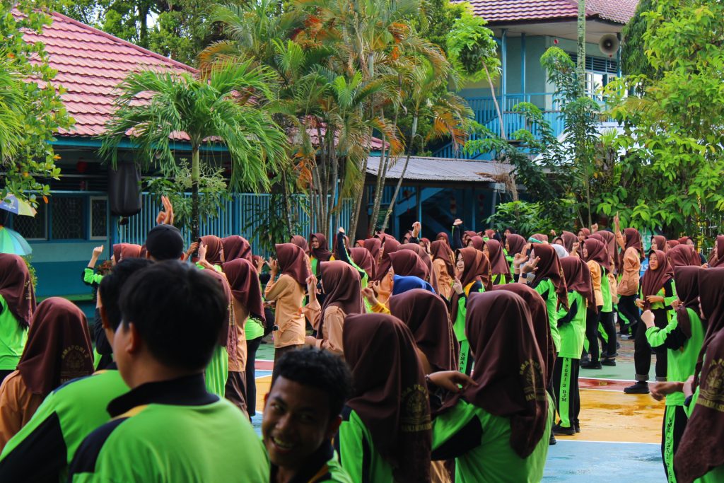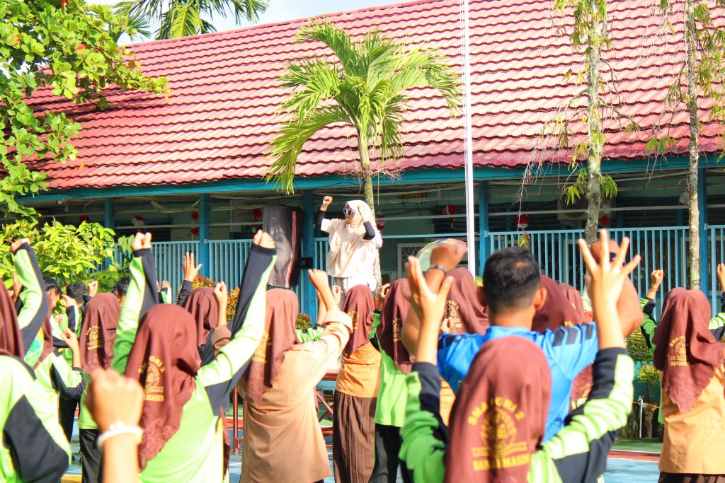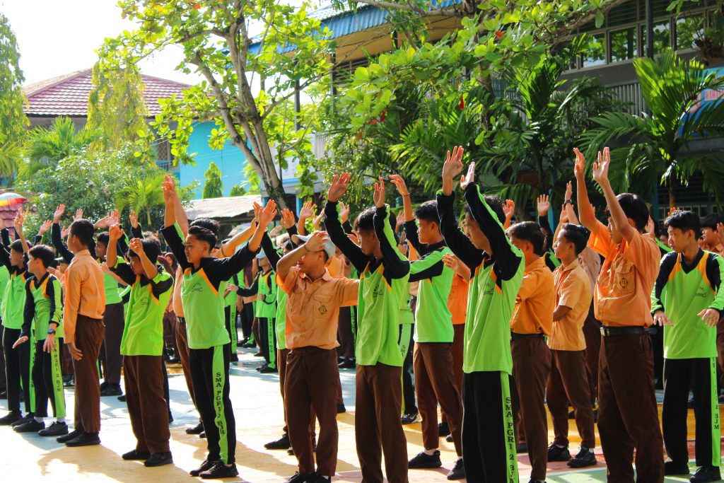Banjarmasin,- Dokumentasi Jum’at Sehat yang dilaksanakan pada Jum’at, 12 September 2025 dengan Ibu Maria Marsidis, S.Pd., Gr dan Ibu Siti Mariati, S.Pd sebagai instruktur senam yang diikuti oleh seluruh siswa kelas X, XI dan XII sebagai peserta senam, kemudian dilanjutkan dengan kegiatan ASPIRUAN (Aspirasi Guru dan Karyawan) setelah pelaksanaan senam selesai.