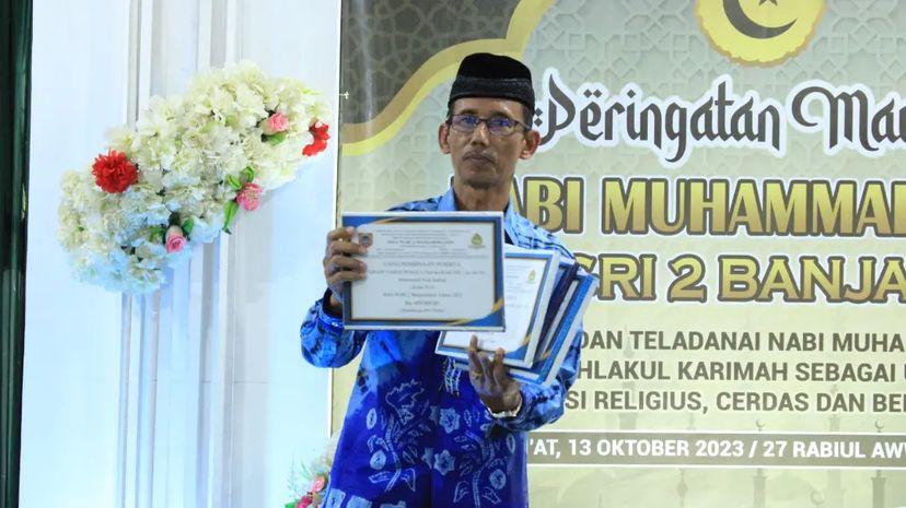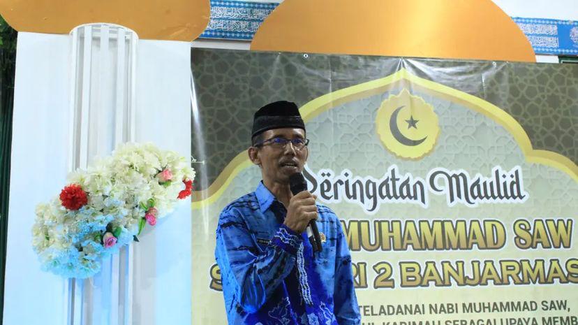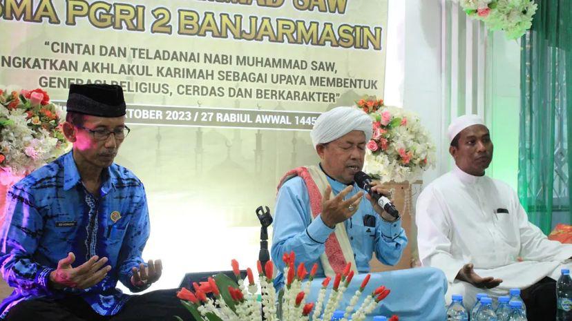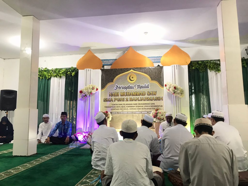 Banjarmasin- Merayakan Maulid Nabi Muhammad SAW merupakan salah satu cara warga sekolah merayakan kelahiran Rasulullah SAW. SMA PGRI 2 Banjarmasin melaksanakan pada hari Jum’at 13 Oktober 2023. Peringatan maulid dihadiri oleh Kepala Sekolah, Dewan guru dan staf tata usaha serta peserta didik dari kelas X, kelas XI, dan Kelas XII. Para undangan juga berhadir seperti Ketua Komite Sekolah dan Ketua RT setempat. Peringatan maulid Nabi Muhammad SAW dilaksanakan pada pukul 07.30 WITA bertempat Musholla SMA PGRI 2 Banjarmasin.