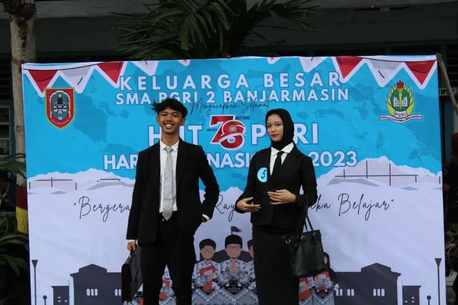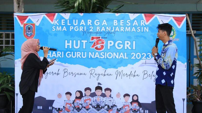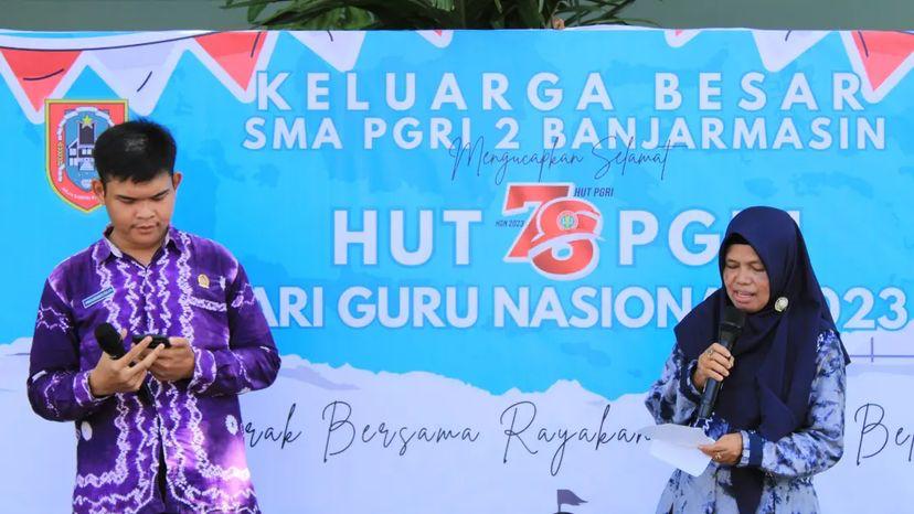 Banjarmasin- Perlombaan dan Perayaan digelar di SMA PGRI 2 Banjarmasin pada Kamis, 23 November 2023 dalam rangka memperingati Hari Guru Nasional (HGN) dan Dirgahayu PGRI ke-78 yang diperingati setiap tanggal 25 November. Tema perayaan Hari Guru Nasional Tahun 2023 adalah “ Bergerak Bersama Rayakan Merdeka Belajar”. Perlu diketahui, tanggal 25 November telah ditetapkan sebagai Hari Guru Nasional melalui Keputusan Presiden Republik Indonesia (Kepres RI) No. 78 tahun 1994. Dipilihnya tanggal 25 November sebagai Hari Guru Nasional, karena pada 24-25 November 1945 telah dilaksanakan kongres organisasi guru se-Indonesia yang kemudian melahirkan organisasi Persatuan Guru Republik Indonesia (PGRI).