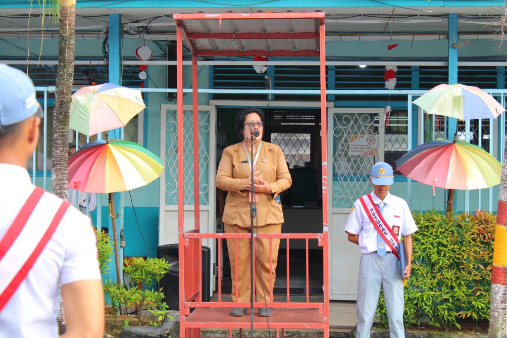Banjarmasin,- Dokumentasi Upacara Bendera sekaligus Pembagian hadiah Lomba HUT RI Ke-80 yang dilaksanakan di SMA PGRI 2 Banjarmasin pada Senin, 15 September 2025 dengan Ibu Susan (Kepala UPTD PPA) selaku Pembina Upacara.
