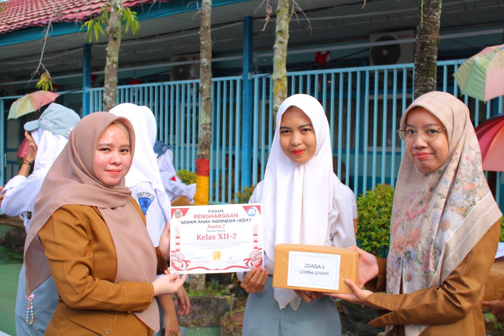 Selesai Melaksanakan upacara bendera, Wakil Kepala SMA PGRI 2 Banjarmasin Bidang Kesiswaan dan Pengurus Osis selaku panitia lomba memberikan hadiah kepada siswa/siswi pemenang perlombaan yang telah dilaksanakan dari tanggal 13 Agustus 2025 – 14 Agustus 2025. Masing-masing pemenang mendapatkan berbagai hadiah dan sertifikat piagam penghargaan yang diberikan langsung oleh Wakil Kepala SMA PGRI 2 Banjarmasin Bidang Kesiswaan, Ibu Sri Yulianti, S.Pd., Gr.