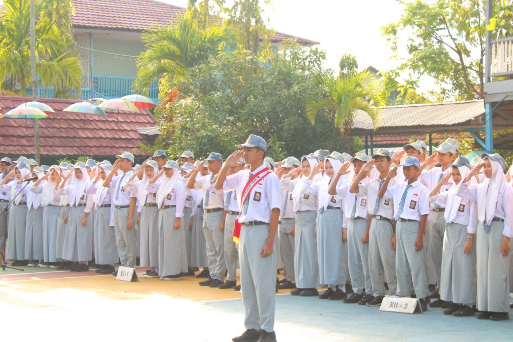 Banjarmasin,- Dokumentasi Upacara Bendera yang dilaksanakan di SMA PGRI 2 Banjarmasin pada Senin, 29 September 2025 dengan Bapak Muhammad Nurjani, S.Pd selaku Pembina Upacara dan Siswa Kelas XI-2 sebagai pelaksana upacara.