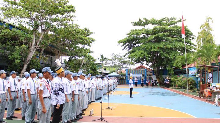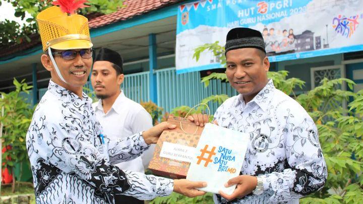Banjarmasin- Sesuai Keputusan Presiden Nomor 78 Tahun 1994, hari lahir PGRI jatuh pada tanggal 25 November dan juga sebagai Hari Guru Nasional. Keluarga besar SMA PGRI 2 Banjarmasin menyelenggarakan upacara peringatan Hari Guru Nasional (HGN) 2023 di halaman sekolah. (Senin, 27 November 2023).